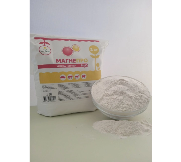 - Восполняет дефицит магния в рационах сельскохозяйственных животных